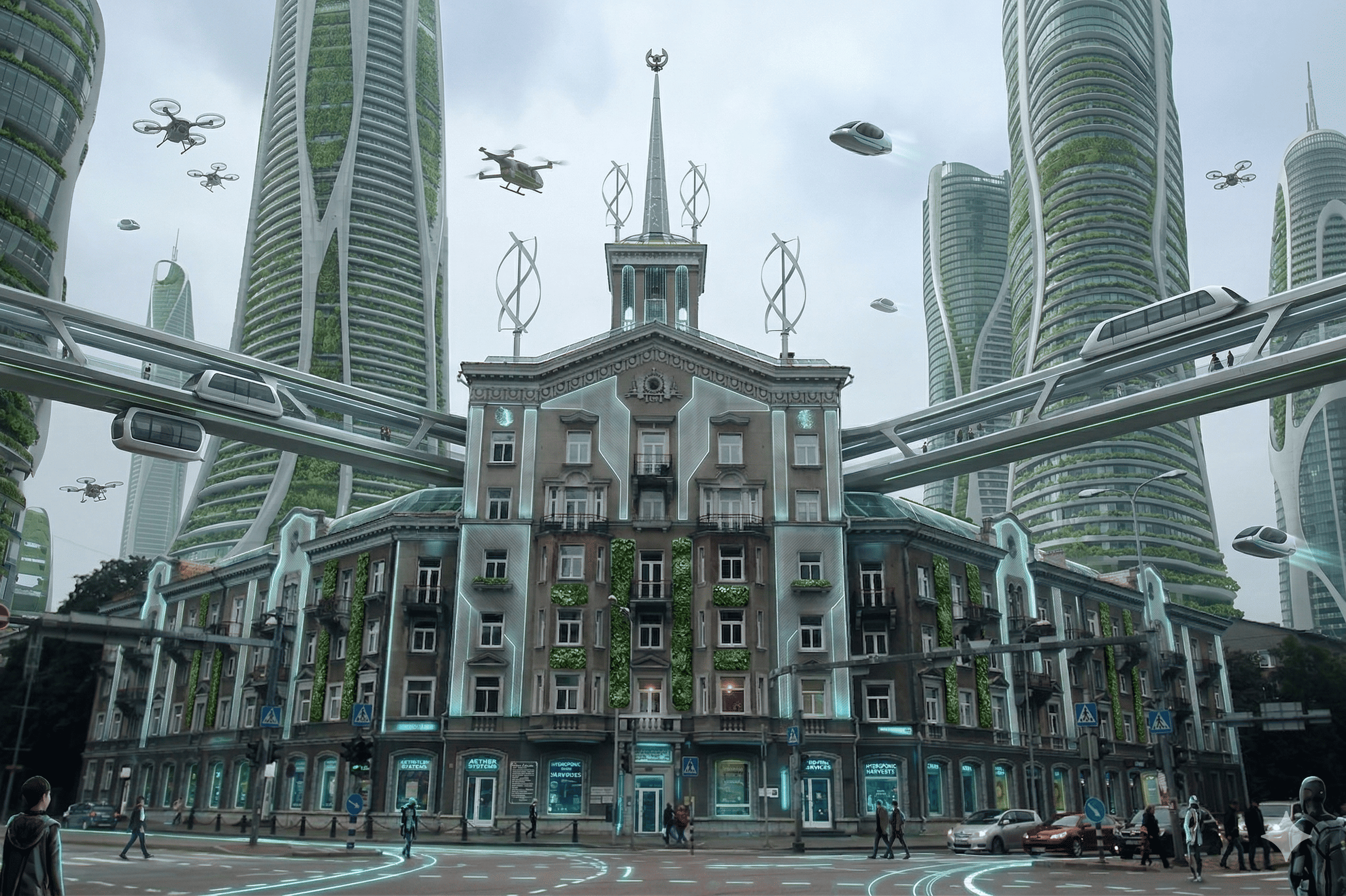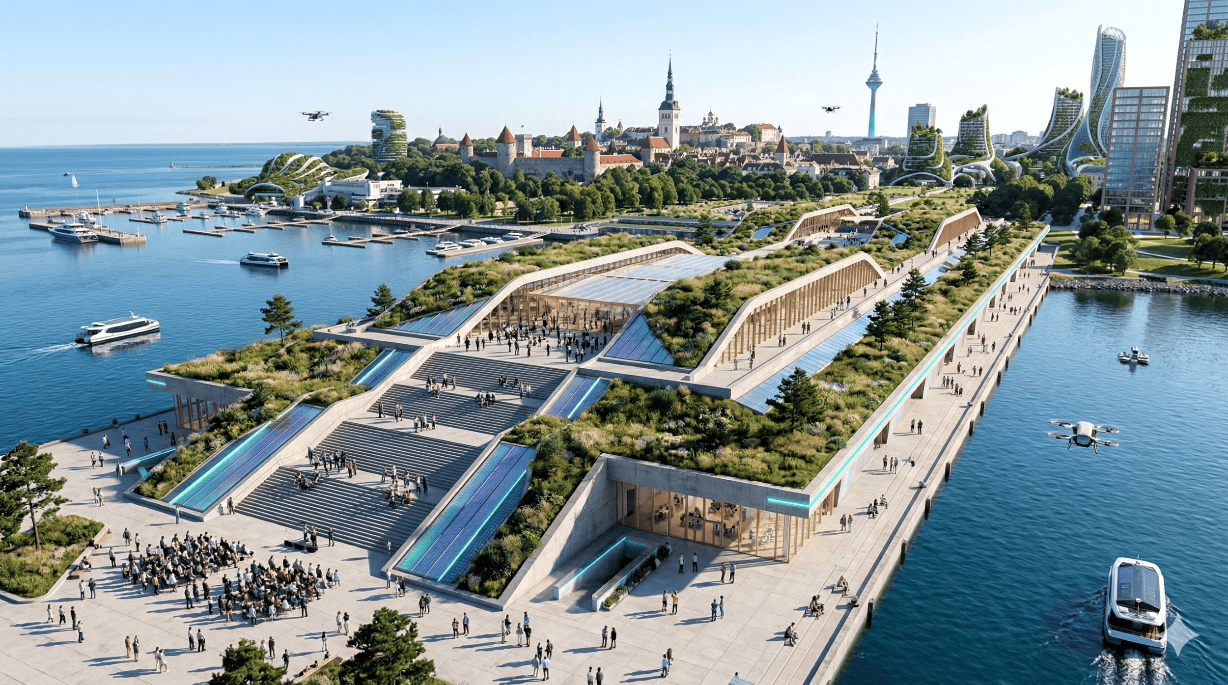 That is why the most interesting AI image of Tallinn is not one in which the city erases itself and starts over. It is one in which layers remain visible. Tallinn’s future will almost certainly look more convincing if it keeps its contradictions intact: the medieval core, the Soviet afterimage of Hotel Viru, the heavy concrete geometry of Linnahall, the panoramic confidence of the TV Tower, the cultural seriousness of KUMU, and the state symbolism of Toompea Castle. These are not background props. They are Estonia’s actual timeline made visible. Linnahall still carries the monumental residue of the 1980 Moscow Olympics; Viru still embodies the strange double world of Soviet foreignness and surveillance; KUMU is both museum and social debate; the TV Tower is literally a window onto Tallinn’s past and present. An AI-generated Estonia becomes much more interesting when it is not scrubbed clean of those layers.