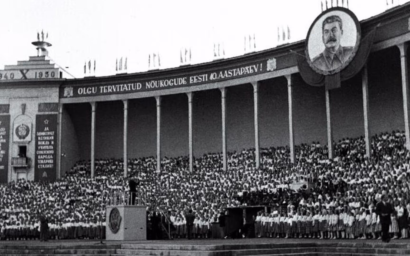 The joyous singing was soon interrupted by turmoil. The Soviet and Nazi occupations during World War II silenced the festivals for a time (Latvia’s festivals paused during the wars, and Estonia’s scheduled 1942 festival was canceled due to the war). However, once the Baltics fell under Soviet rule after the war, an intriguing dynamic emerged. The Soviet authorities decided to allow the song and dance festivals to continue, seeing them as useful outlets for “folk” expression – albeit under close control and with a heavy dose of propaganda. In Estonia, the Song Festival was revived in 1947 in Tallinn, now as an officially sanctioned Soviet event. Similarly, Latvia re-established its national festival by the late 1940s, adding a large folk dance component in 1948 to create the full Song and Dance Festival format it has today. Lithuania’s festivals resumed in the 1950s under Soviet auspices.